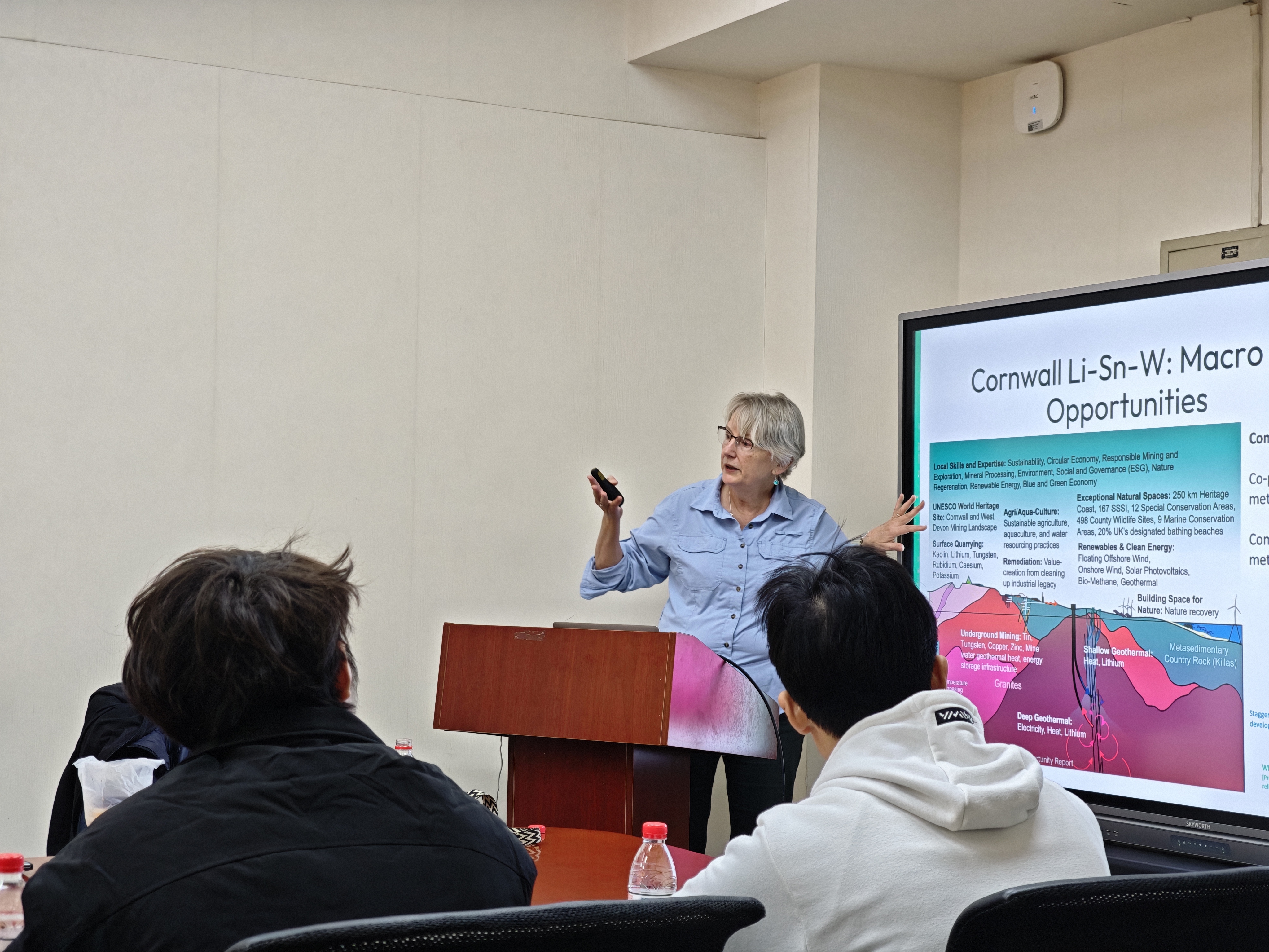 11月2日,受资源与安全工程学院特聘副教授诸利一邀请,英国埃克塞特大学坎伯恩矿业学院教授Karen Hudson-Edwards莅临我院,以“采矿业与循环经济:未来之路?”为专题开展讲座,北京联合大学原校长助理、城市轨道交通与物流学院原院长、北京科技大学资源与安全工程学院教授杨鹏主持此次活动。参与本次讲座的有相关领域专业老师、本科生及研究生(含硕士、博士)。此次交流活动旨在推动人们深入探索如何以循环经济平衡采矿业的发展,促进学院师生的国际沟通交流。