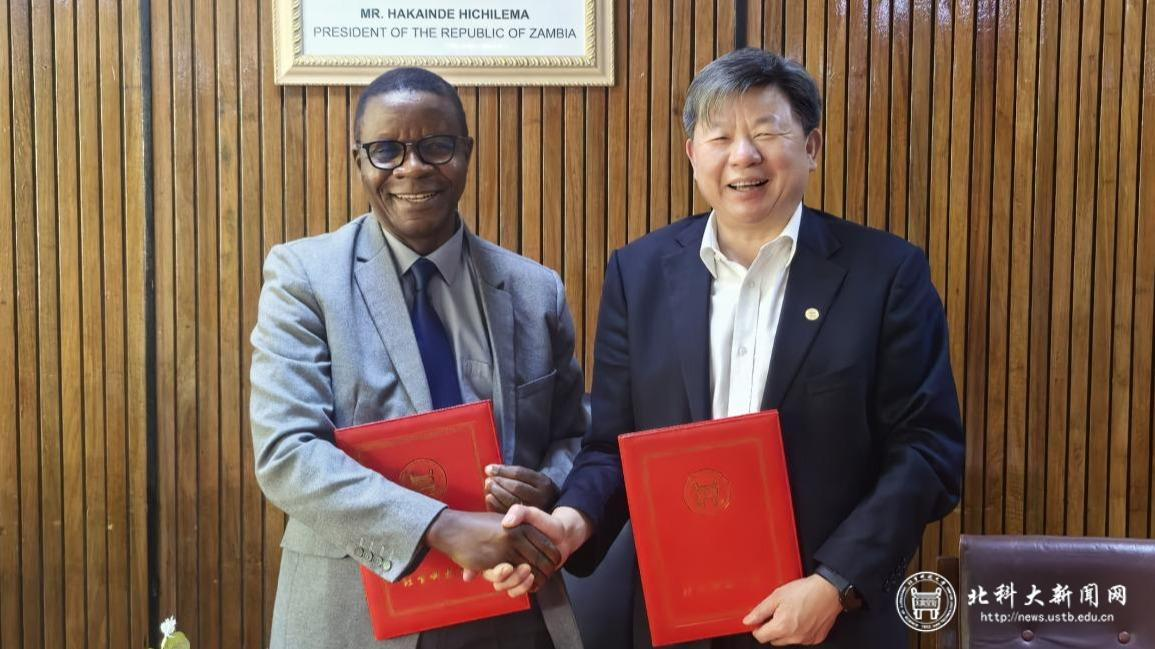 在赞比亚大学,杨仁树会见赞比亚大学校长Mundia Muya,双方签署校际合作谅解备忘录及共建中国—赞比亚矿产资源绿色安全开发“一带一路”联合实验室的合作协议。杨仁树指出,共建“一带一路”联合实验室是落实中赞两国元首共识的务实举措,也是学校建设国家级对外科技合作平台的新突破,希望双方围绕矿产资源绿色开发、安全管控等关键技术开展联合攻关,推动人才联合培养和高水平科研合作,打造两国矿业领域开放创新的新平台。Mundia Muya高度赞同共建联合实验室的重要意义,表示将与北京科技大学携手创新突破,为当地矿业发展和共建人类命运共同体作出新的贡献。