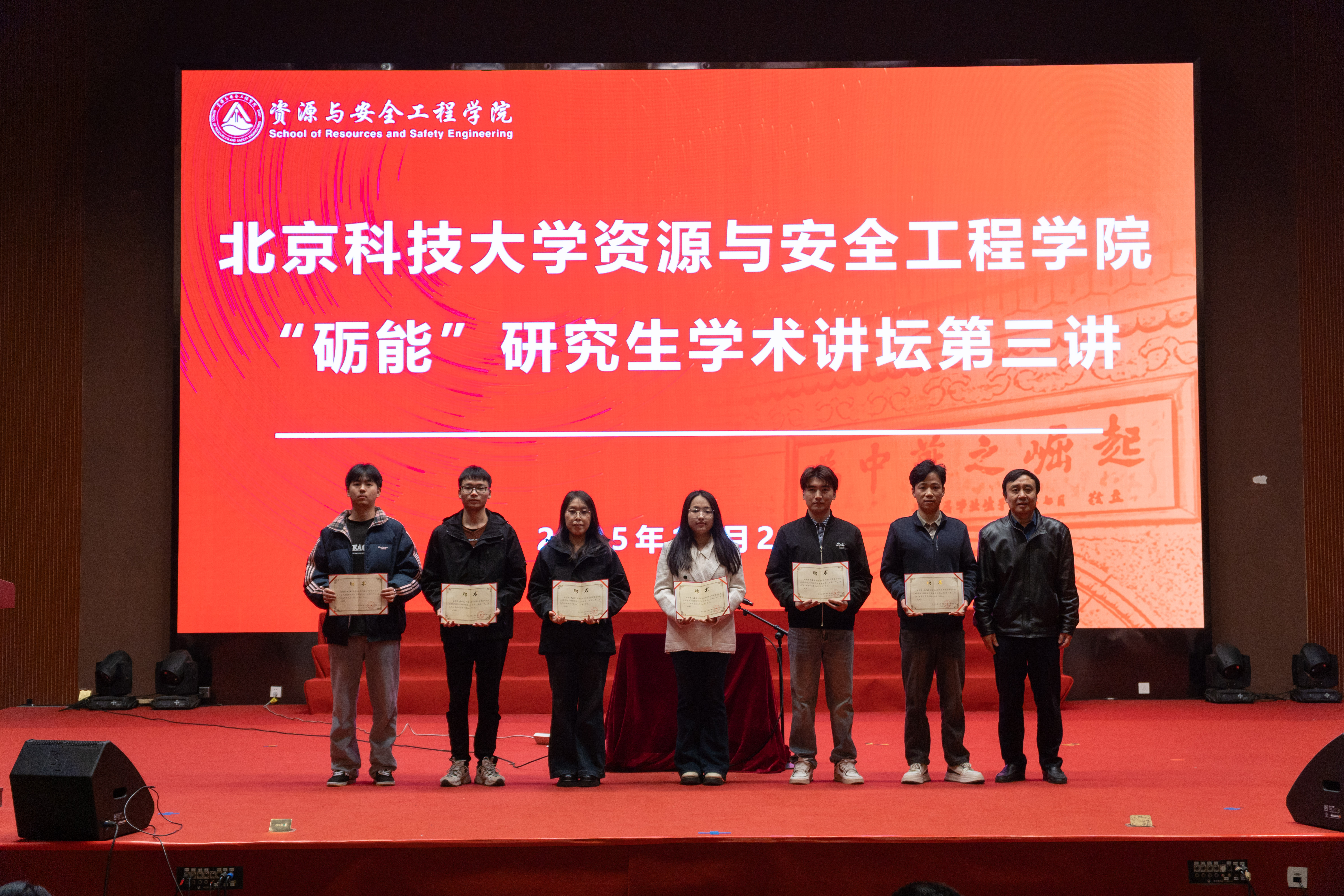 10月23日,资源与安全工程学院“砺能”研究生学术讲坛第三讲在北京科技大学管庄校区文娱活动中心顺利举办。学院副院长金爱兵,学院安全科学与工程系副教授、研究生辅导员吴晓东,辅导员陈康宁、黄思涵、梁明德参加活动。活动由黄思涵主持。