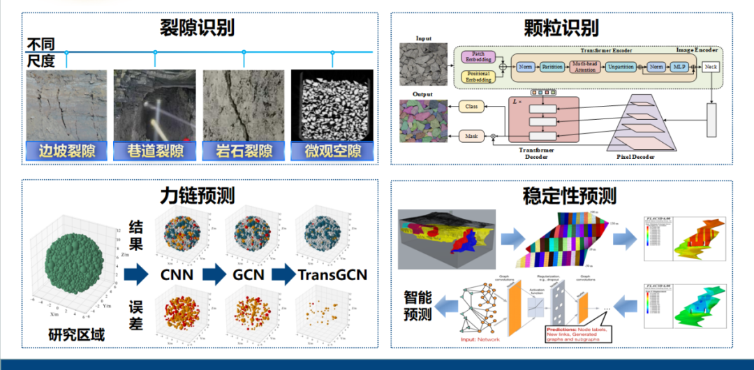 此后,他又陆续开展颗粒识别、力链预测、采场稳定性预测等多项研究,不仅成功拓宽了图像识别技术在矿山领域的应用边界,还将智能预测、智能规划等人工智能技术融入矿业应用场景,丰富了矿业智能化解决方案的维度。在这一系列研究中,他既实现了技术层面的突破,也深刻理解了跨技术融合对行业转型升级的重要意义。