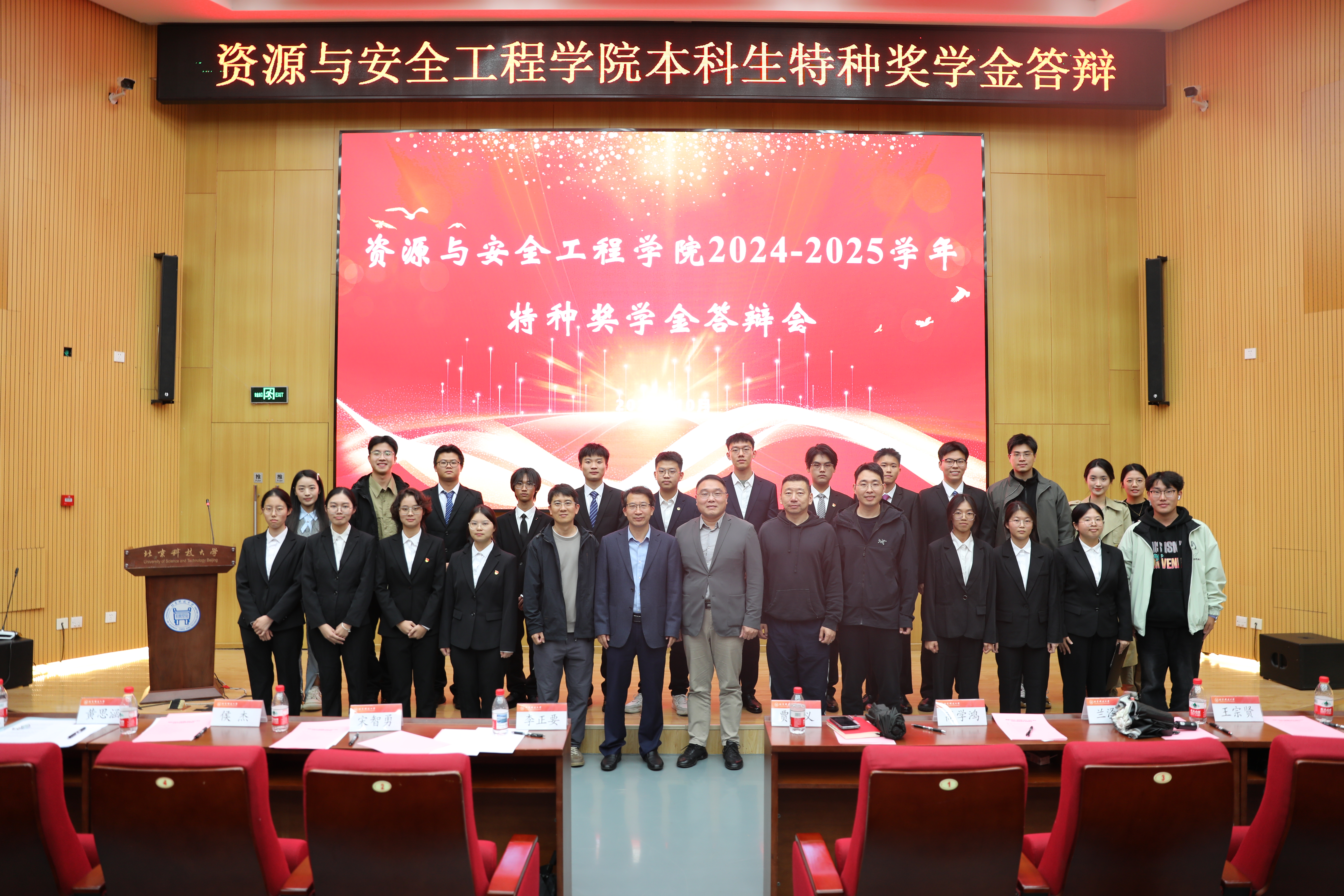 10月9日,北京科技大学资源与安全工程学院举办2024-2025学年特种奖学金答辩会在学术报告厅,学院副院长李正要,党委副书记、副院长贾兆义,力学科学与工程系系主任宋智勇,安全科学与工程系副教授高学鸿,资源工程系副教授侯杰及各年级辅导员参加本次答辩会。本科2025级新生观摩答辩。