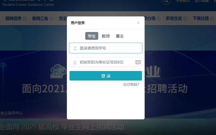 2.用学号和密码登录。(初始密码是身份证号后八位)
