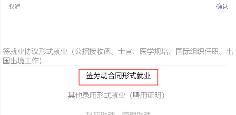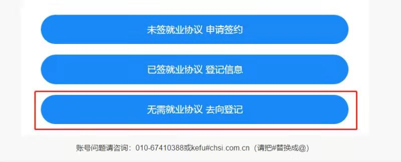 6.点击“无需就业协议 去向登记”,选择“签劳动合同形式就业”。