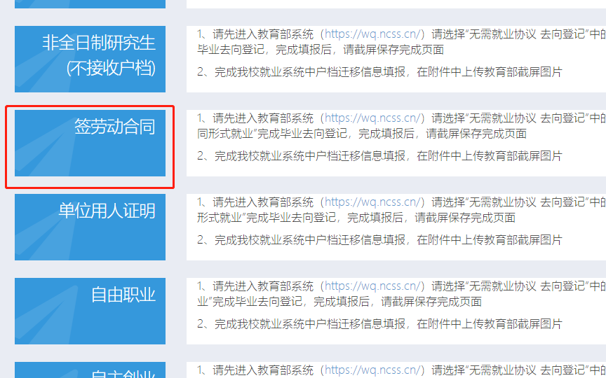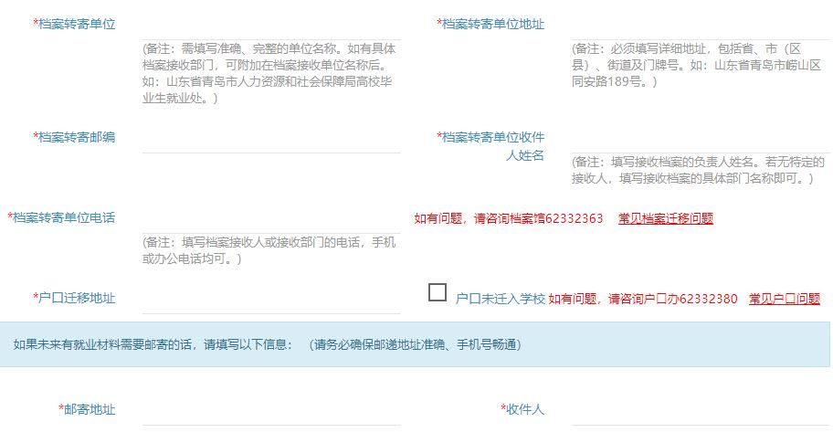 就业手续办理须知:毕业生明确毕业去向后,需填报就业信息、户口及档案信息。