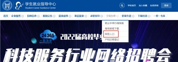 1.进入北科大学生就业指导中心(job.ustb.edu.cn),点击手续办理,选择下拉菜单“网签入口”。