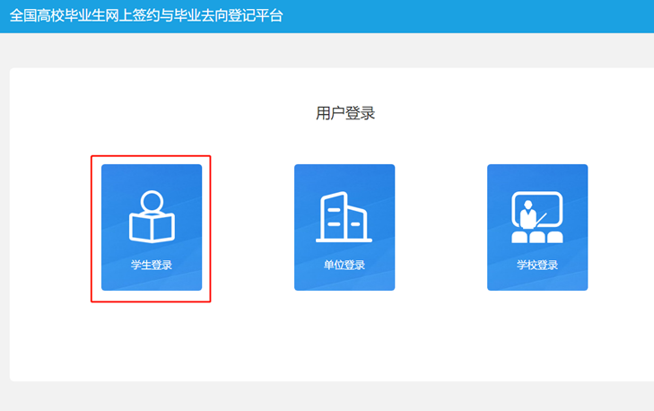 2.进入全国高校毕业生网上签约与毕业去向登记平台(网签平台),点击”学生登录“。